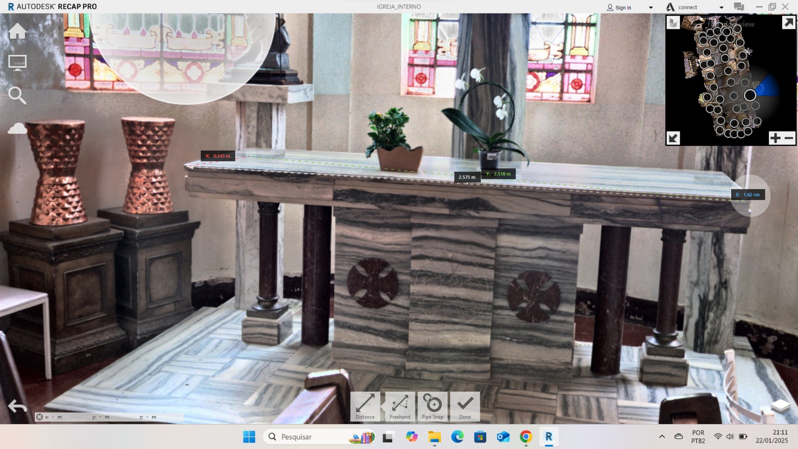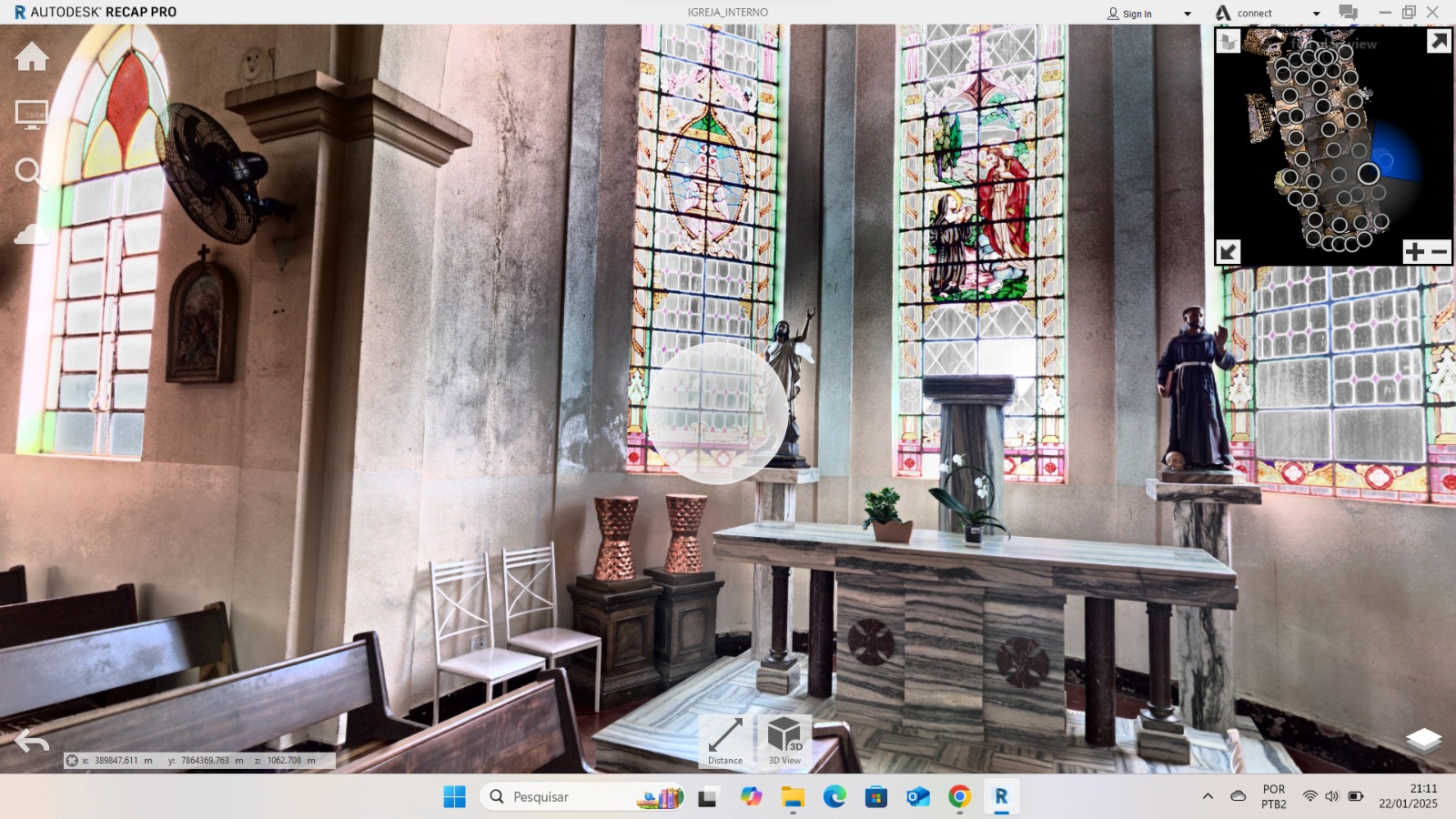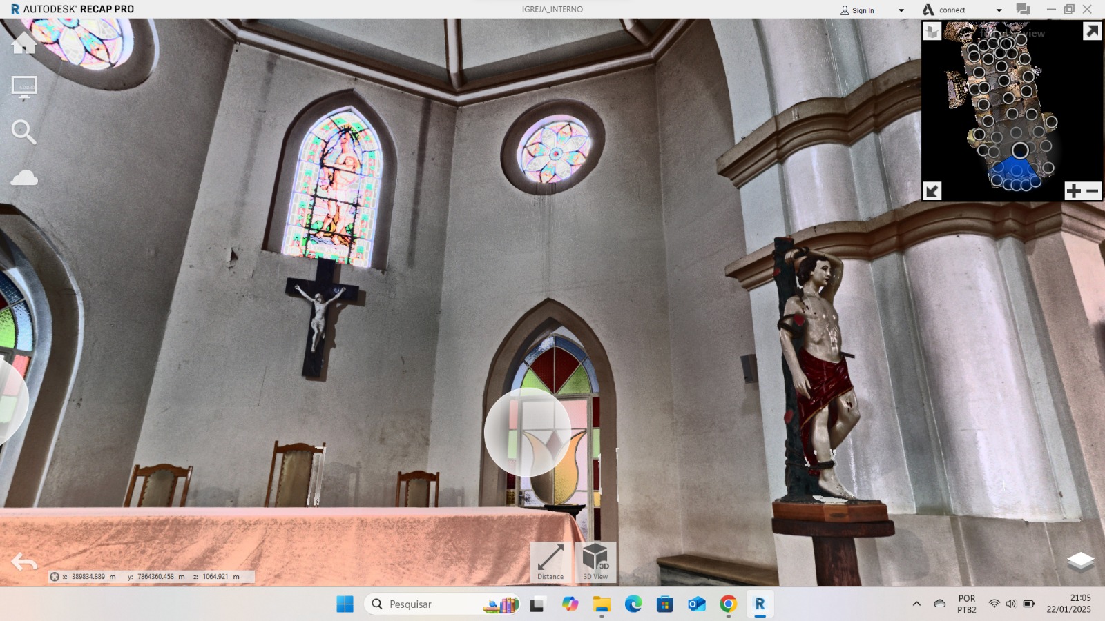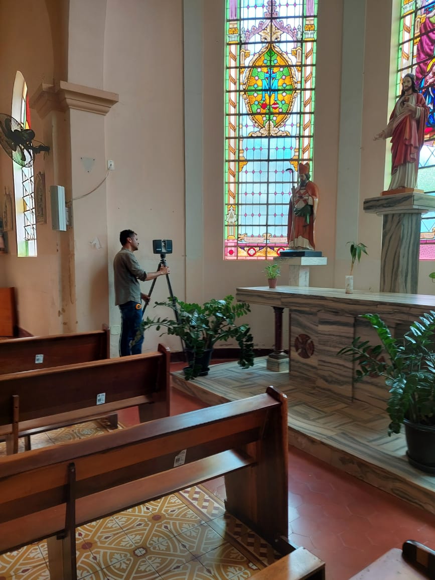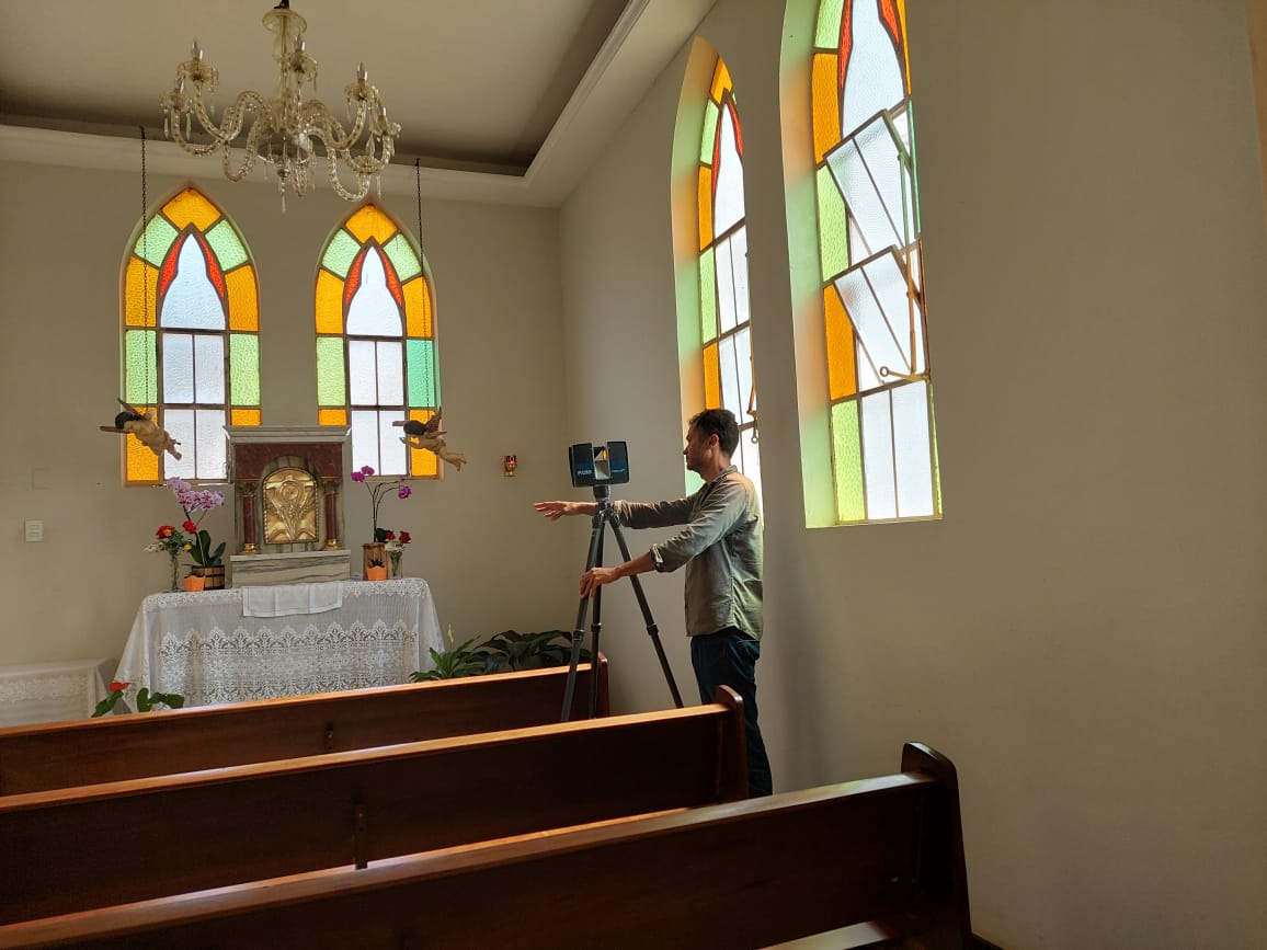 O escaneamento a laser com o scanner Faro do interior da Igreja de São Gotardo foi uma das etapas cruciais para garantir a máxima precisão no levantamento dos detalhes detalhados do espaço. Utilizando uma tecnologia de laser, o scanner Faro foi capaz de capturar o ambiente interno da igreja com altíssima precisão, criando um modelo tridimensional detalhado, que representa fielmente a estrutura e os acabamentos internos do local.